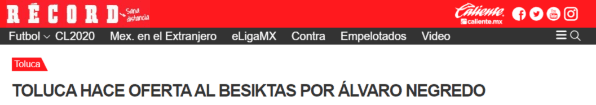 “Toluca hace oferta al Besiktas por Álvaro Negredo. La propuesta de los Diablos Rojos por el delantero de 35 años rondaría los 3.5 mdd“, publicó el diario Récord en ese entonces, confirmado que el interés por parte de las autoridades del conjunto azteca eran 100% reales.