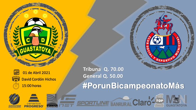Por la séptima fecha de la Liga Nacional de Guatemala, Guastatoya en condición de local recibe al resistencia del Municipal en un partido que se jugará este jueves 1 de abril. El cotejo será televisadoEN VIVO Y EN DIRECTOa través de la señal de TELEVISIETE.