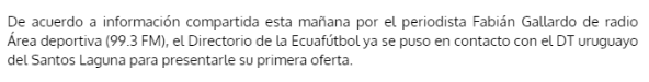 Lo que comenzó como un rumor hace algunos meses, ahora sería información. De hecho, desde Ecuador, donde respetan al estratega por su paso consagratorio en Barcelona de Guayaquil,ya habrían dado un paso más para iniciar las negociaciones.