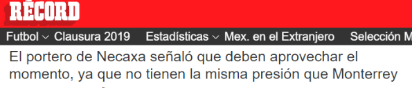 Ahora enfrentará a Rayados en la Liguilla, pero como portero del Necaxa y está muy confiado para esta serie.