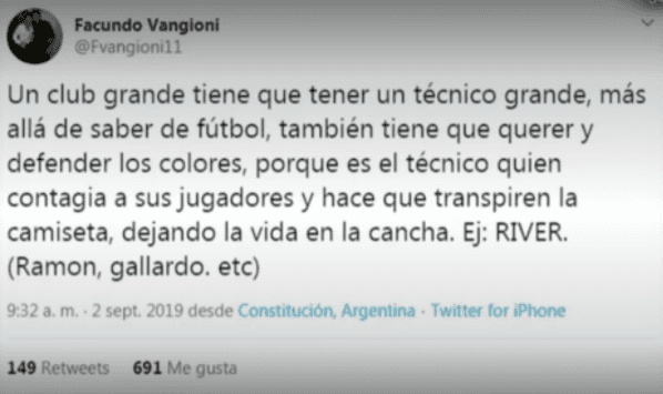 Horas después, Facundo, el hermano del Piri, borró la polémica publicación de su cuenta personal de Twitter y abrió la discusión: ¿Fue contra el uruguayo o el entrenador de Boca Juniors?
