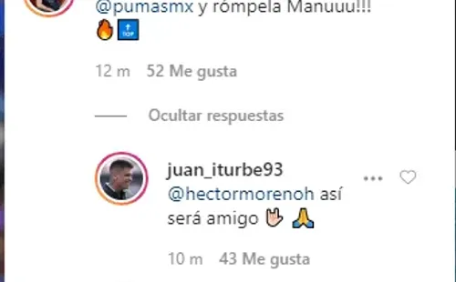 Sin embargo, hubo todavía más: en los comentarios, Héctor Moreno le pidió al nacionalizado paraguayo que analice la posibilidad de regresar a Los Universitarios, y la respuesta de Iturbe no dejó dudas: “Así será, amigo”.