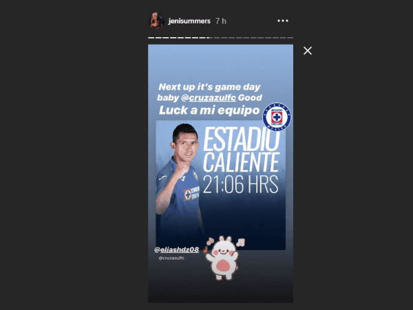Jeni Summers volvió a estar pendiente de su amado Cruz Azul en Instagramdurante el encuentro frente a Tijuana en el Estadio Caliente por la séptima jornada del Apertura 2019 de la Liga MX.