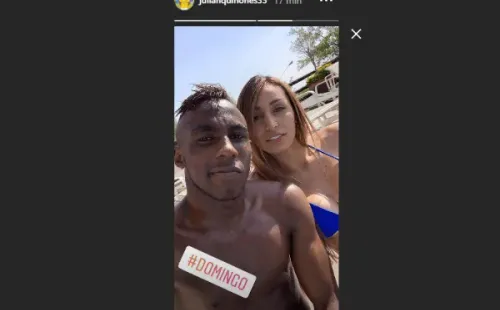A través de una historia en instagram, el delantero colombiano publicó una imagen junto a su pareja paseando y disfrutando del día de sol.
