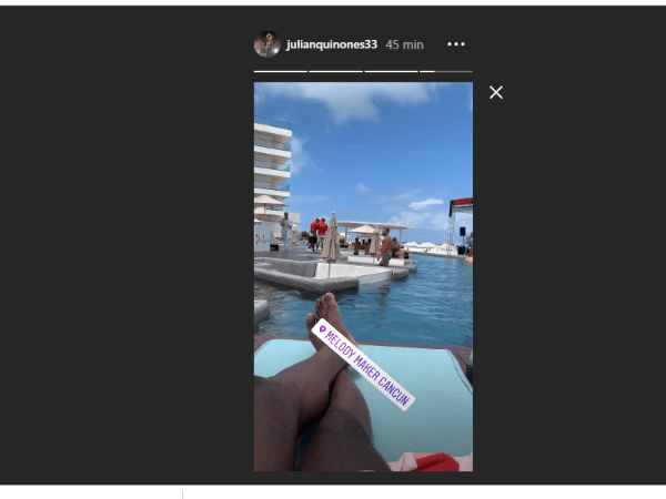 El extremo colombiano no para de publicar historias en Instagram junto a su parejaen una de las playas de lujo de Cancún.