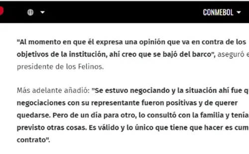 Esto no cayó para nada bien en la directiva de los Felinos y para nada lo ocultaron. Miguel Ángel Garza liquidó al extremo de 27 años en una entrevista esta mañana.