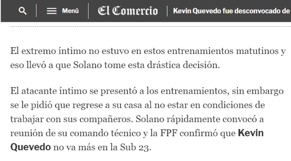 Si bien la Federación Peruana de Fútbol dio a conocer que la decisión fue del cuerpo técnico y no aclaró el motivo, los medios, e incluso exfutbolistas de aquel país, apoyaron la teoría de que se trató de una indisciplina.