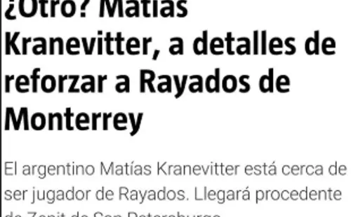 Kranevitter arriba a Rayados, en principio, para alternar con los dos titulares en su puesto: el paraguayo Celso Ortiz y el mexicano Carlos Rodríguez, ambos en sus respectivas Selecciones.