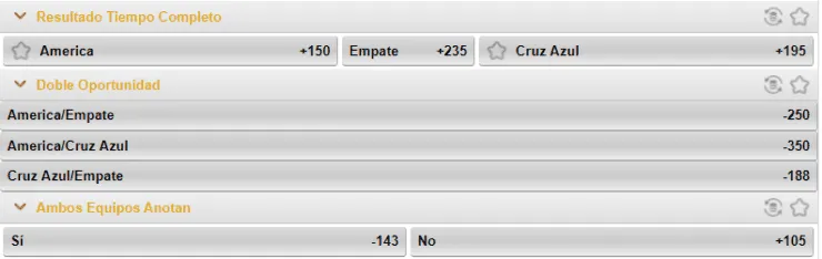 En Caliente.mx, el favorito para vencer el Clásico Joven de este domingo es el América, que paga +150 en desmedro de los +195 que paga el Cruz Azul si crees que ellos serán los ganadores del encuentro. Si piensas que esta nueva edición termina en empate, paga +235.