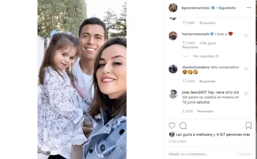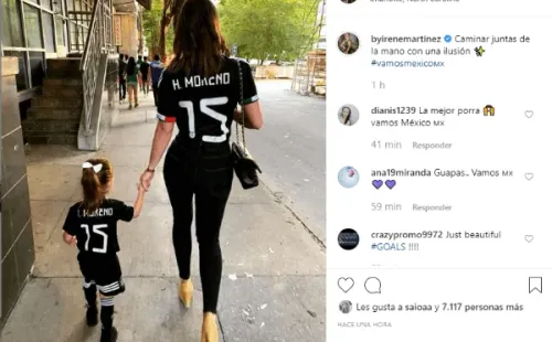 En Instagram, la pareja del futbolista, Irene Martínez, subió una foto junto a su hija. Las dos llevaban la playera de México y el nombre del defensor.