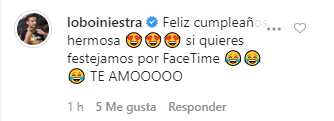 Como si fuera poco, su amado le comentó la publicación de Instagram: “Feliz cumpleaños. Si quieres festejamos por FaceTime. TE AMOOOOO”.