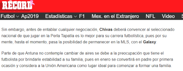 “Parte de que Antuna no contemple cambiar de aires se debe a la preocupación que tiene el futbolista por brindarle estabilidad a su familia, pues en enero se convertirá en padre por primera ocasión y considera a la Unión Americana como lugar ideal para comenzar a formar una familia”, afirma el periodista Armando Melgar.