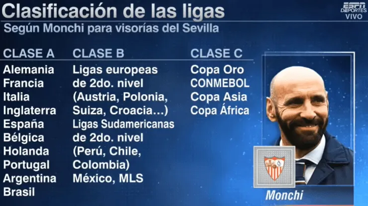 “La Liga mexicana junto con la MLS está en las ligas Clase B. Más o menos al mismo nivel que puede estar Uruguay, Chile, Colombia, Suiza, Austria, Polonia“, detalló en declaraciones a ESPN el ex jugador que también fue directivo de la Roma. Además, aclaró que la categoría corresponde con la capacidad que tiene el club de Nervión para ver futbolistas.
