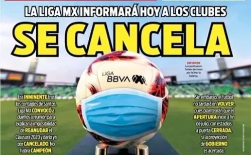 La tapa deRécord de hoy fue lapidaria para realizar esta ilustración: “SE CANCELA”, se lee en el título principal, seguido de la bajada: “La Liga MX informará hoy a los clubes”. “Era inminente tras los contagiados de Santos. La Liga MX convocó a los dueños a una reunión para explicar la imposibilidad de reanudar el Clausura 2020 y darlo ya por cancelado. No habrá campeón”, agrega.