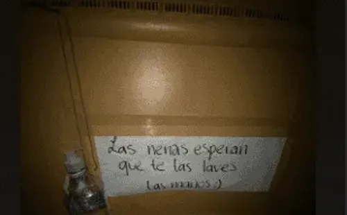 “Las nenas esperan que te las laves… las manos”, decía un escrito en un baño público.