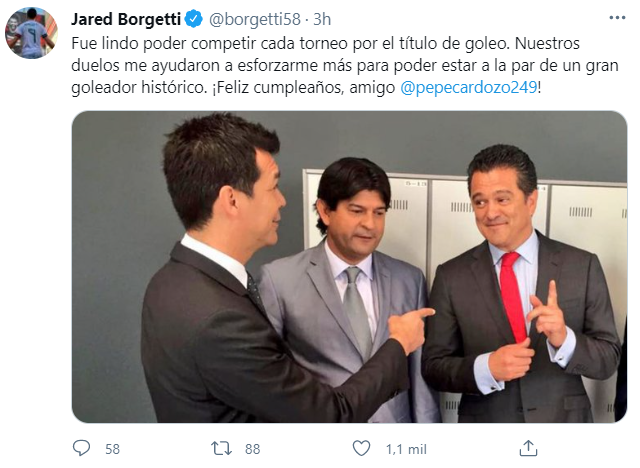 Fue lindo poder competir cada torneo por el título de goleo. Nuestros duelos me ayudaron a esforzarme más para poder estar a la par de un gran goleador histórico. ¡Feliz cumpleaños, amigo Pepe Cardozo!, escribió Borgetti.