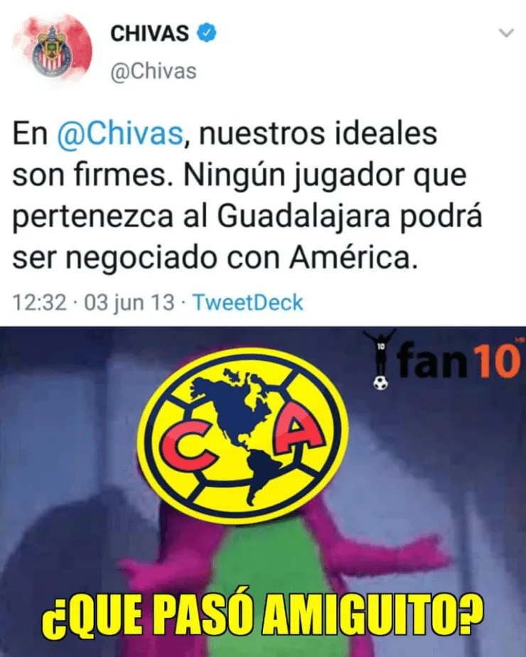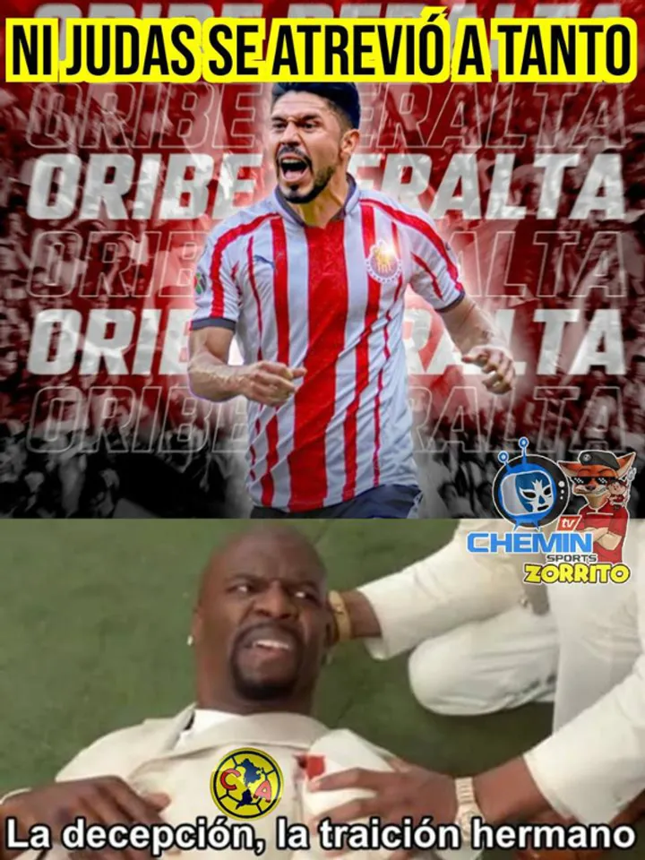 Oribe Peralta abandonó América, donde no tenía continuidad, para pasar a Guadalajara en el gran Bombazo del año en México y, por supuesto, para los memes no pasó inadvertido en las redes sociales.