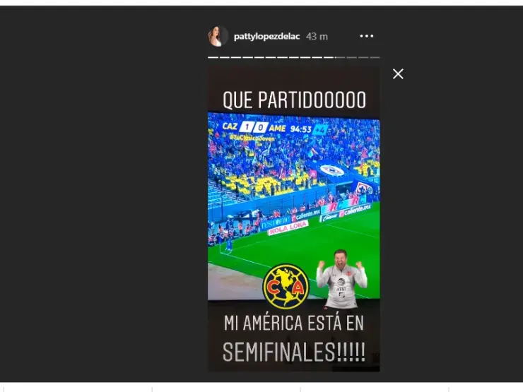 América dejó en el camino otra vez a Cruz Azul de la mano de Agustín Marchesín y Patty López lo celebró con todo en su cuenta oficial de Instagram.