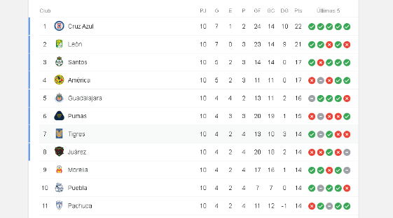 Los Felinos luego de haber disputado10 jornadas en el Clausura 2020 de la Liga MX soninvencibles en la cancha del Universitario jugando como locales, ya que registran cinco partidos con un saldo de cuatro victorias y un empate, con 11 goles anotados y 3 recibidos.