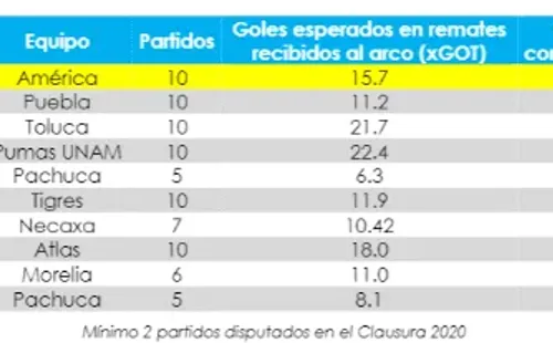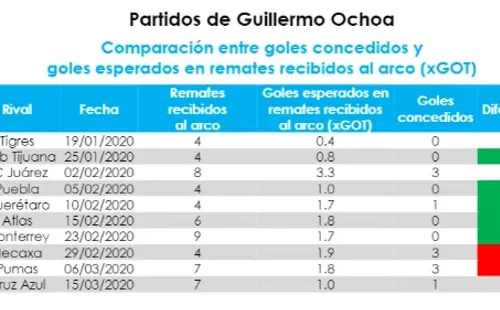 Memo salvó al América en varias ocasiones de manera espectacular a pesar de que en la tabla de posiciones no estén primeros. A continuación, unos datos interesantes de Opta teniendo en cuenta los goles recibidos y los goles esperados.