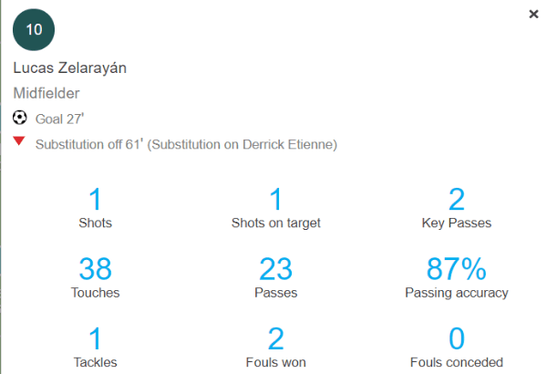 ¿Cómo fue el partido del sudamericano? El futbolista realizó un tiro a portería, tocó el balón en 38 oportunidades, realizó 23 pases y logró un 87% de efectividad. A su vez, ganó dos infracciones y no las concedió a su rival.