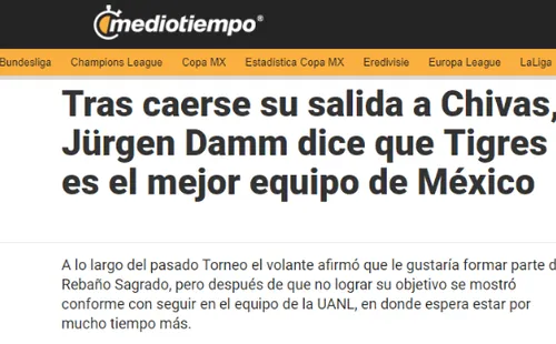 Uno de los tantos deportistas en brindar sus declaraciones fueJürgen Damm, jugador que hace un tiempo había manifestado su deseo de jugar en Chivas.