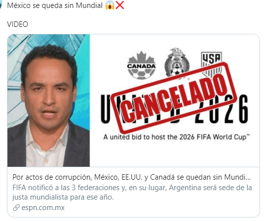 Por otra parte, ESPN se sumó y largó varias… Entre ellas, que José Juan Macías, quien volvió a Chivas de Guadalajara, dejaría el Rebaño para irse al Porto de Portugal. Además, otras noticias sobre Fidel Kuri y que ¡el Mundial 2026 sería cancelado por escándalos de corrupción entre las Federaciones de México, Estados Unidos y Canadá!