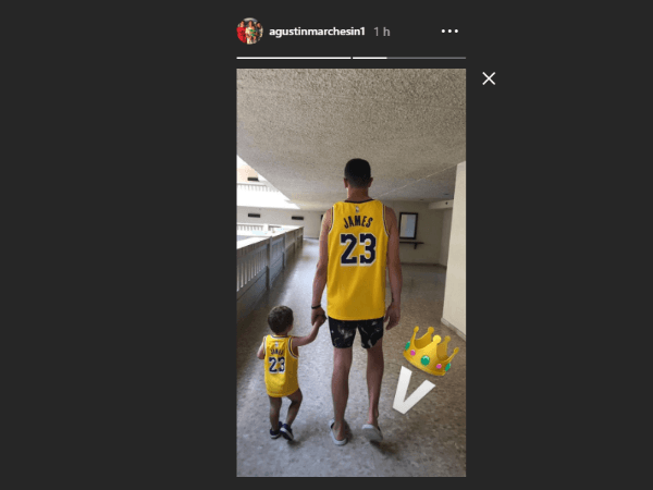 De hecho, en las historias de Instagram, el portero argentino posó de espaldas junto a su hijo, ambos con la playera de LeBron James, una de las grandes estrellas de la NBA.