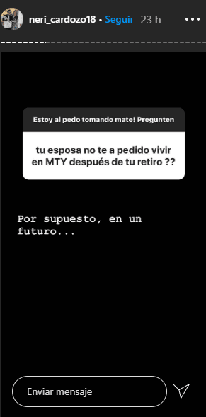“¿Dónde te gustaría retirarte?”, le consultó un seguidor y Neri no dudó: “Boca o Rayados, aunque aún falta”.