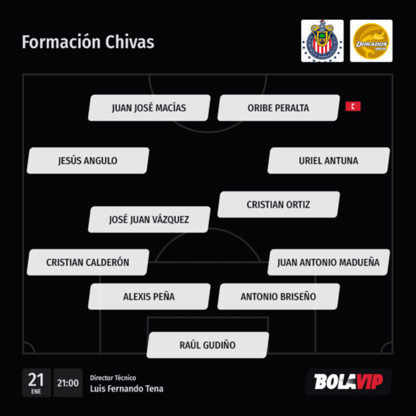 De esta manera, el once de Luis Fernando Tena sería: en el arcoRaúl Gudiño; en la defensaJosé Antonio Madueña, Antonio Briseño, Alexis Peña y Cristian Calderón; en el medioJosé Juan Vázquez, Cristian Ortiz, Uriel Antuna y Jesús Ángulo;en el ataque estaríanOribe Peralta yJuan José Macías.