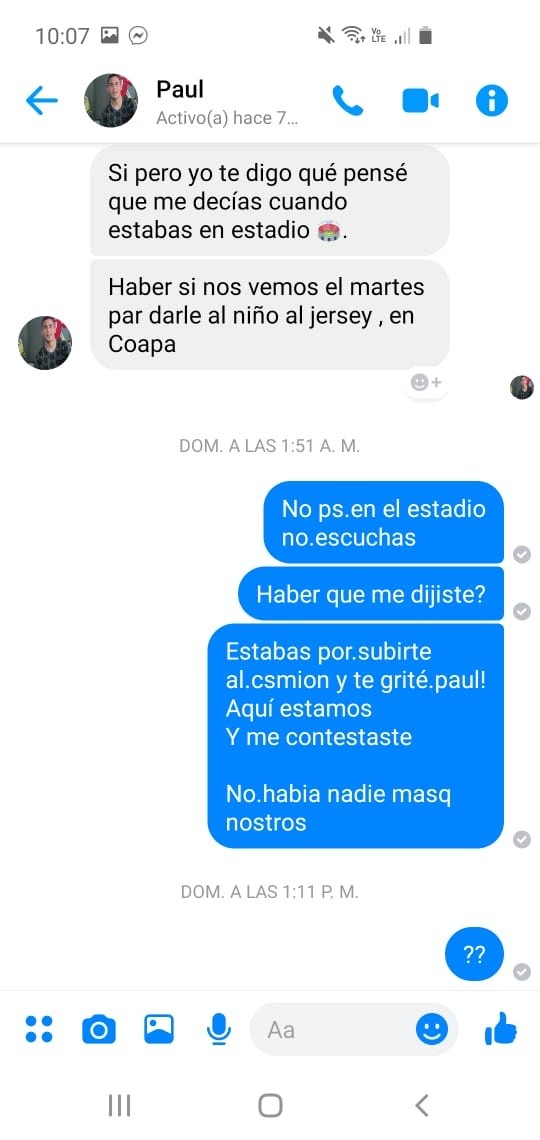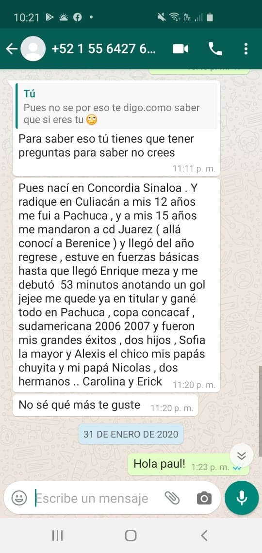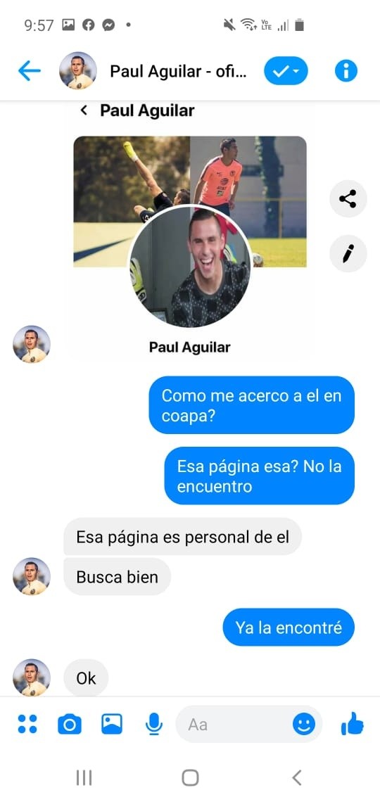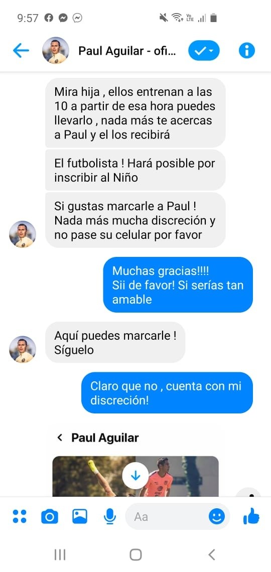 Un usurpador, del otro lado de la pantalla, le aseguró que trabajaba para Paul Aguilar y que ya lo había puesto al tanto de la situación, incluso le pasó el “perfil personal” del jugador en la misma red social y hasta su número de WhatsApp.