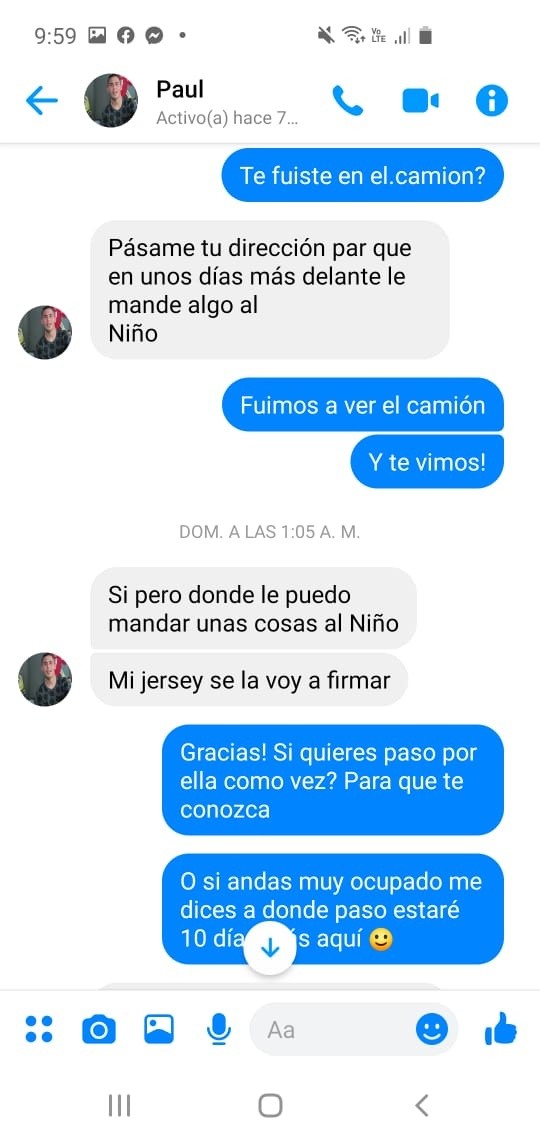 El pequeño lloró desilusionado al no poder acercarse a su ídolo y Yadira, víctima del momento, volvió a contactar con la cuenta falsa, siempre pensando que era el jugador, para reclamarle por haber ignorado al pequeño, y esta vez, el usurpador le solicitó su dirección para enviarle un jersey autografiado.