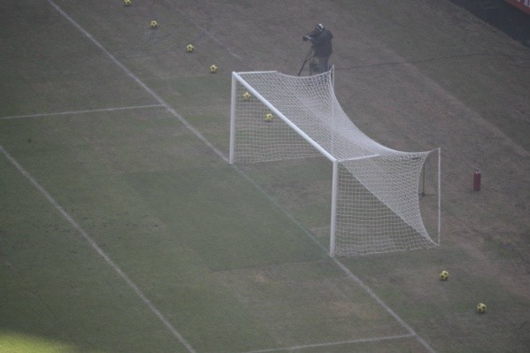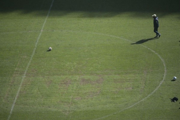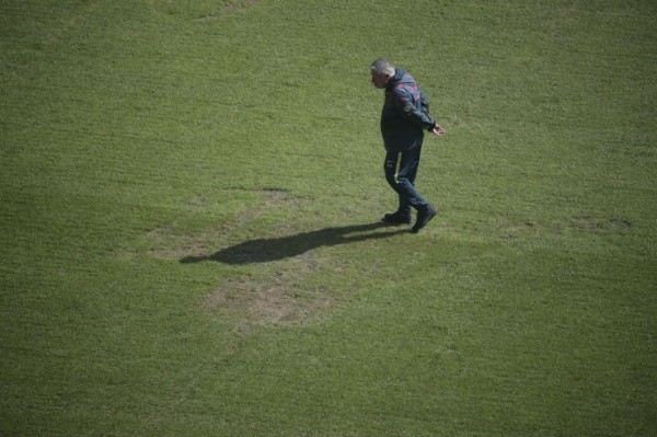 En el entrenamiento abierto matutino, se pudo observar como hay ciertas zonas del campo de juego -más precisamente las áreas- que aún no están en óptimas condiciones.