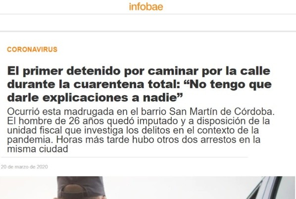 Todo aquel que viole la cuarentena será detenido por la policía, que salió a controlar a la población en las calles. A horas del arranque de esto, ya hay un detenido.