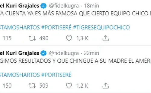 Pero no todo quedó allí:minutos después, volvieron a twittear desde su cuenta personal ¡contra América y Tigres!