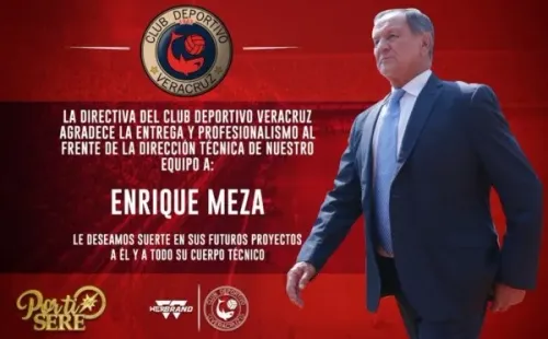 En las últimas horas de ayer, la escuadra jarocha anunció la partida de Enrique Meza, ya que aceptaron su petición de no continuar con el equipo.