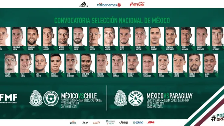 En la próxima Fecha FIFA de marzo, el conjunto nacional enfrentará a Chile y Paraguay. Visitará San Diego, California, el 22 de marzo y el 26 estará en Santa Clara.