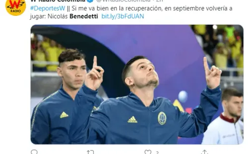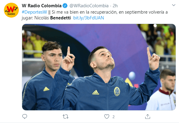 Aprovechando la cuarentena,W Radio Colombiacontactó al atacante y le consultó sobre cómo marchaba su rehabilitación. Y, por cierto, fue muy optimista al respecto: “Va muy bien, ha evolucionado muy bien”.