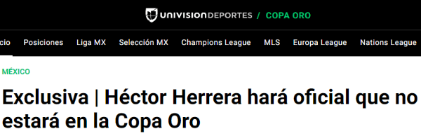 Según lo que publicó Univisión Deportes, Héctor Herrera no acudirá al llamado de Gerardo Martino para la Copa de Oro.