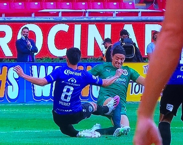 ToñoRodriguezsalió lejos buscando un balón, sin saber que Meraz también iba a lanzarse con la plancha hacia adelante, transformando la jugada en una acción criminal. Si el jugador de Mazatlán golpeaba de lleno al portero de Chivas, tranquilamente lo podría haber fracturado.