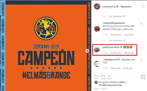Paty Lopez, fanática del elenco del Piojo Herrera, se lo comentó con unos emojis de una carita con corazones en los ojos.
