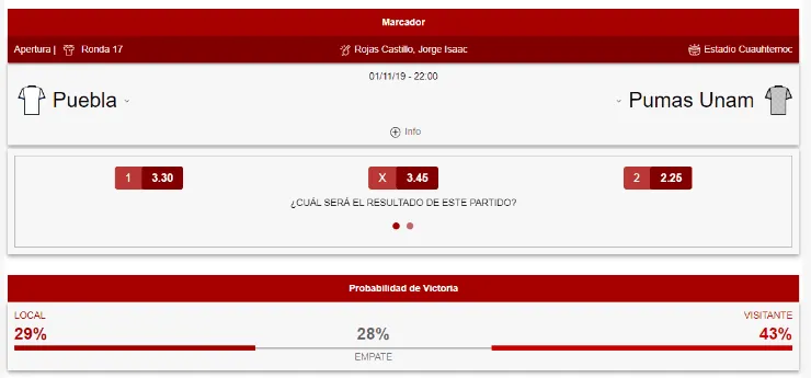 En el análisis de Caliente.mx, el favorito para ganar este juego será Pumas, cuyo triunfo paga +125, mientras que Puebla paga +230. Si te la quieres jugar por un empate, este resultado paga +245.