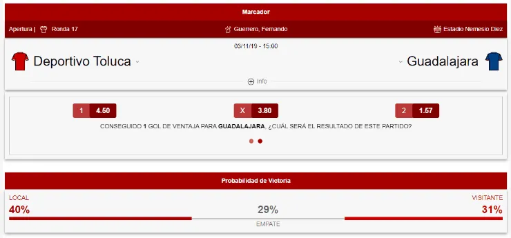 Por ello, en el análisis que nos entrega semana a semana nuestros amigos de Caliente.mx, el favorito en este encuentro es Toluca, cuyo momio indica que su triunfo paga +140. El empate, en tanto, paga +235 y el triunfo de las Chivas paga +210.