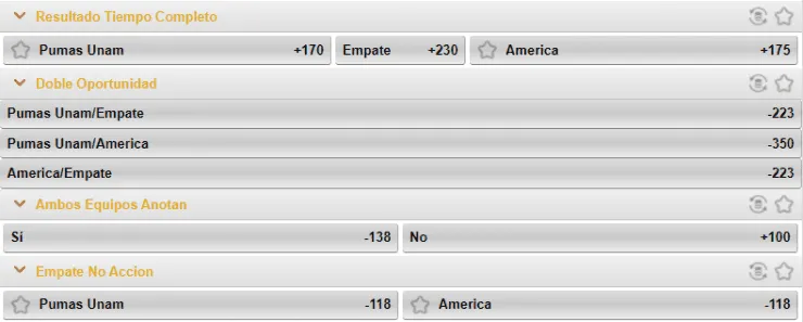 Según los momios que entrega Caliente.mx, un triunfo tanto del equipo local, como la visita, paga +170, mientras que la igualdad +230. Si crees que ambos equipos van a anotar en este juego, paga -138, y si crees lo contrario, paga +100.