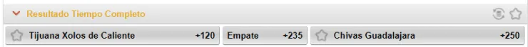 Para este juego, Caliente.mx anticipa que el favorito para ganar son los Xolos de Tijuana, que paga +120, en desmedro de los +250 para las Chivas. Si piensas que el juego termina en empate, paga +235.