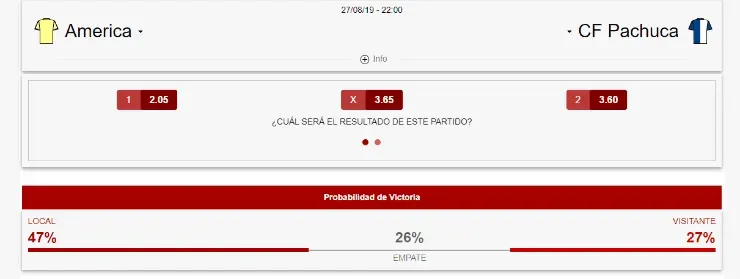Este martes 27 de agosto, América recibe en el Estadio Azteca a Pachuca con el objetivo de retomar el liderazgo. El encuentro está programado para las 21:00 horas (horario del centro de México), y en los momios que entrega Caliente.mx, las Águilas son favoritas al pagar +105. Un empate, +265 y un triunfo de los Tuzos +260.