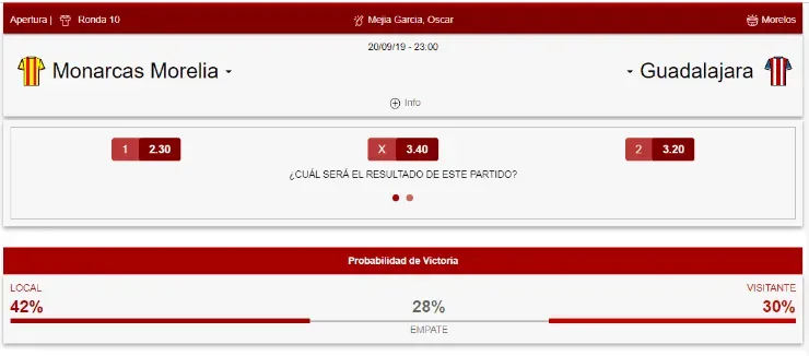 Para Caliente.mx, el favorito en este juego es el Morelia, ya que su triunfo paga +130, comparado con los +220 de las Chivas. El empate, si te la quieres jugar, paga +240.