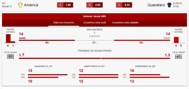 En el análisis que entrega Caliente.mx, las Águilas son las favoritas para ganar este juego, con -118, en relación a los +333 que paga el triunfo del Querétaro. Si eres de los que buscará apostar por un empate entre ambos, este paga +265.
