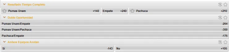 En los momios de Caliente.mx, el favorito para ganar este encuentro que pone punto final a la primera jornada de la Liga MX son los Pumas de la UNAM. En los momios, el triunfo paga +140. Ahora, si crees que el triunfo se lo lleva Pachuca, paga +210. Si eres de los que piensa que este juego termina en empate, paga +240.