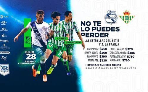 Se viene el gran desafío entre Puebla y Betis en el Estadio Cuauhtémoc el próximo domingo 28 de julio a las 15 y el club mexicano confirmó que los dos compatriotas rivales dirán presente: Andrés Guardado y Diego Lainez.